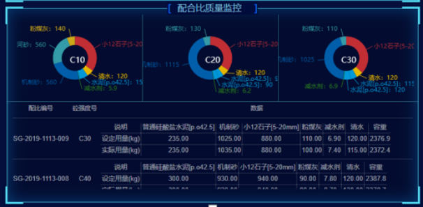 可以監(jiān)控生產(chǎn)過程中的骨料配比、水泥量、粉煤灰量、水膠比、拌合產(chǎn)量、摻配比等各項數(shù)據(jù),并具有實時誤差報警的特色功能,同時可以根據(jù)實驗室配比、生產(chǎn)配比的優(yōu)化,對常用不同型號的混凝土強度進行自動優(yōu)化推薦。